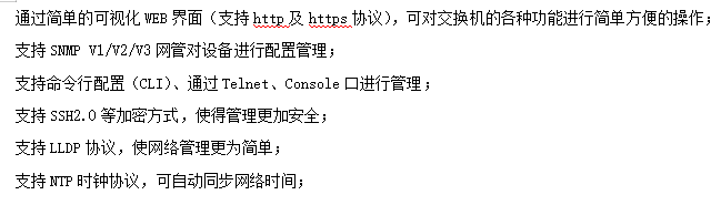 ●管理功能:支持WEB、CLI、SNMP等多種管理方式